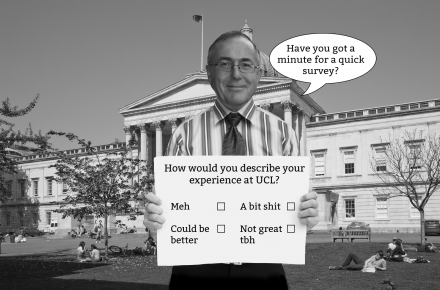 If you’ve seen the six foot tall billboards around UCL encouraging final year students to take part in the National Student Survey (NSS), you might think it’s commendable for UCL to come down from the Portico steps to ask us what we really think. In reality though it’s a pain in the arse that management could do without, and it’s simply highlighting how poor the teaching and student experience is, especially compared to other Russell Group universities. Unfortunately for College bigwigs, what we say in the NSS is about to become crucial in putting food on the table.